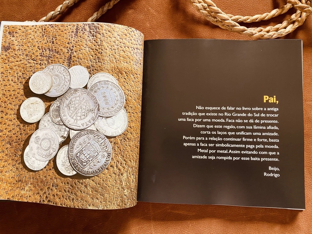 Também descreve momentos importantes, poesias, esgrima crioula, receitas, afiação e manutenção das facas.