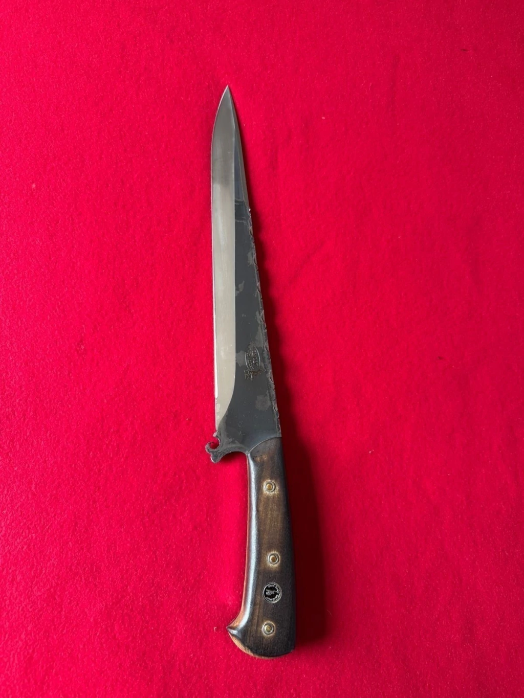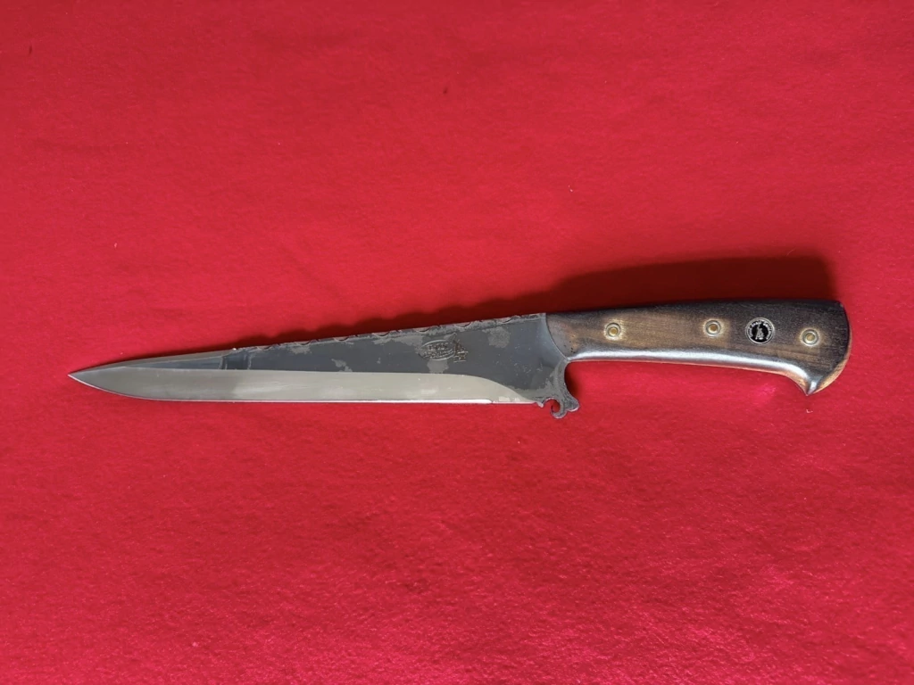 Lindíssima faca de porte grande comemorativa aos 20 anos da cutelaria DCS e ao tradicional 20 de setembro! Possui desenho exclusivo em forma de lança e cabo queimado robusto. Corte fácil e agressivo. NOVA marca registrada DCS no corpo da lâmina, sem vazado.