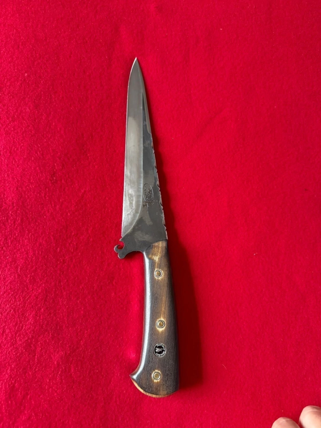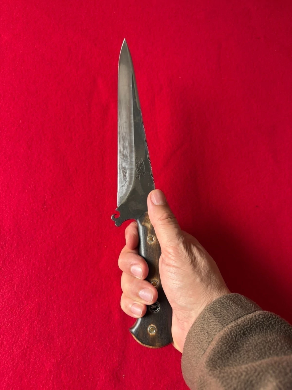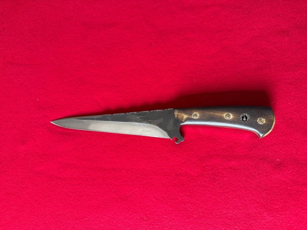 Lindíssima faca de porte médio-grande comemorativa aos 20 anos da cutelaria DCS e ao tradicional 20 de setembro! Possui desenho exclusivo em forma de lança e cabo queimado robusto. Corte fácil e agressivo. NOVA marca registrada DCS no corpo da lâmina, sem vazado.