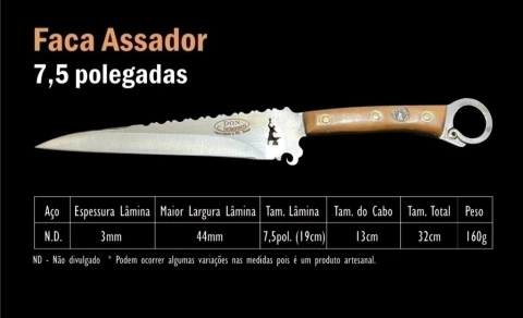ATENÇÃO: FACAS EXCLUSIVAS PARA CARNE. PEQUENAS ALTERAÇÕES PODEM ESTAR PRESENTES, VISTO QUE SÃO PRODUTOS E PROCESSOS ARTESANAIS. FOTOS ILUSTRATIVAS.