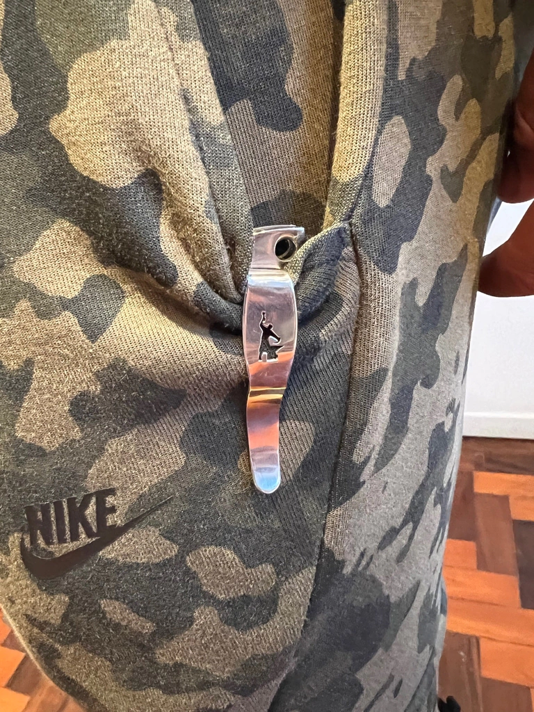 clipe em aço com forjador vazado para marcar presença quando usado no bolso