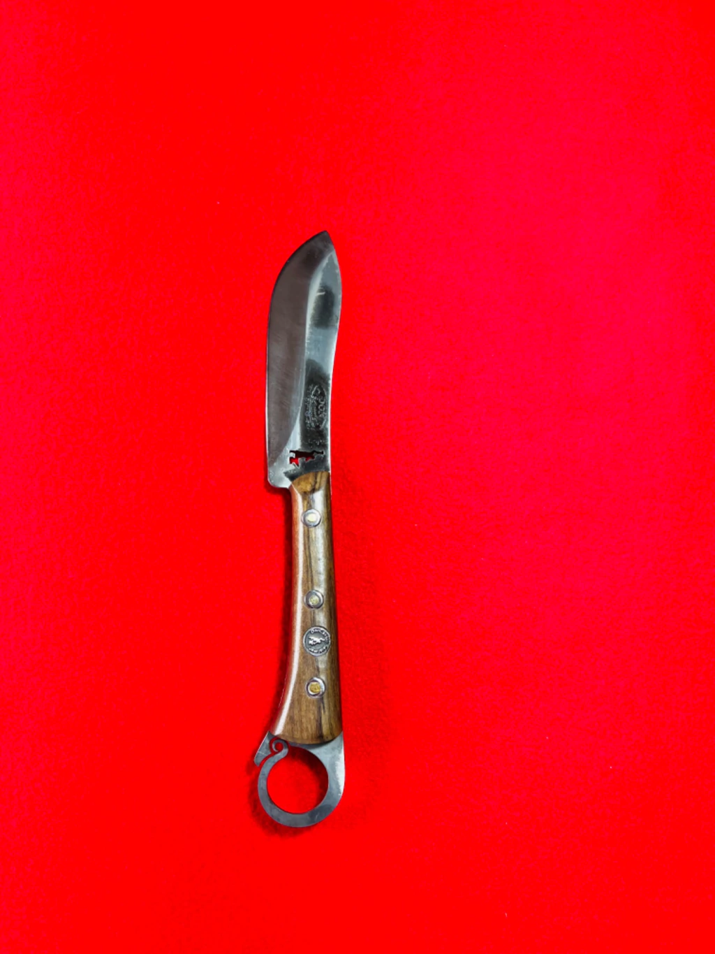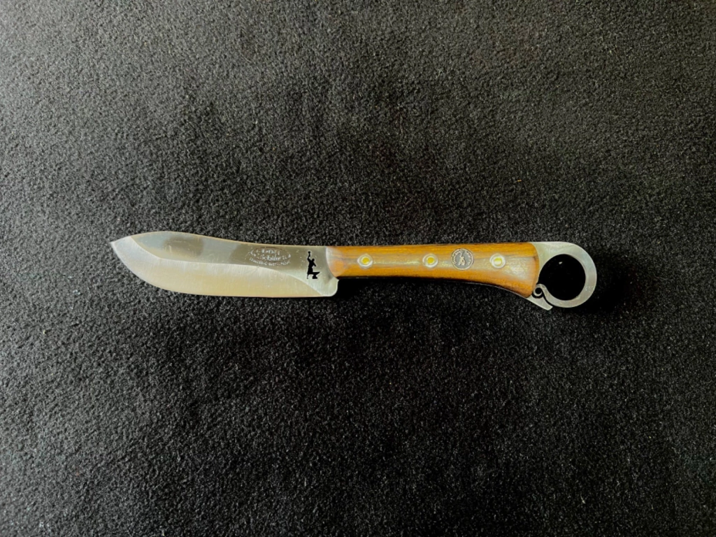 Lindíssima faca de porte pequeno estilo Butcher/Açougueiro, modelo consagrado mundialmente. Ideal para fatiar e trabalhos de corte contínuo. Possui desenho exclusivo com "ponta" rombuda e argola DCS característica no cabo. Faca com pegada muito ergonômica e de ótimo fio, gerando maior conforto na hora de usar.